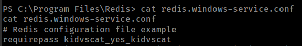 There is radis server running, get in the nmap scan, so finding radis server creds: C:\Program Files\Redis\redis.windows-service.conf