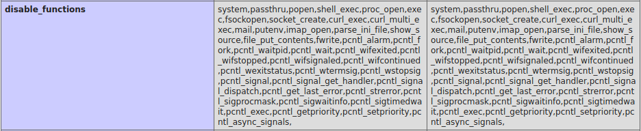 phpinfo()function to check the server’s php configuration and found out that in the server there are so many php functions are disabled and thats why the ExploitDB script was not worked.
