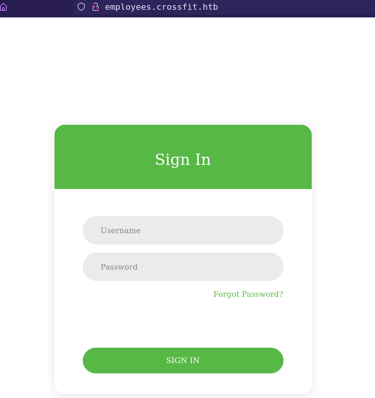 employees.crossfit.htb contains a login page.