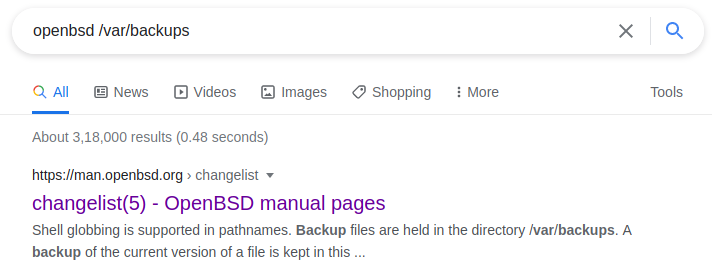 When searching for openbsd /var/backup first result is changelist
