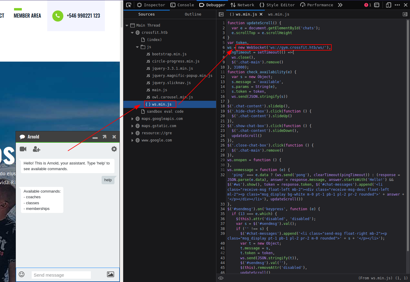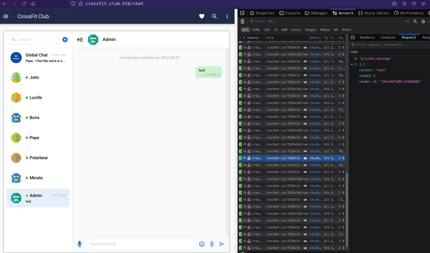 gym.crossfit.htb have WebSocket API used for chat feature.