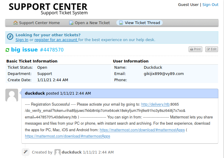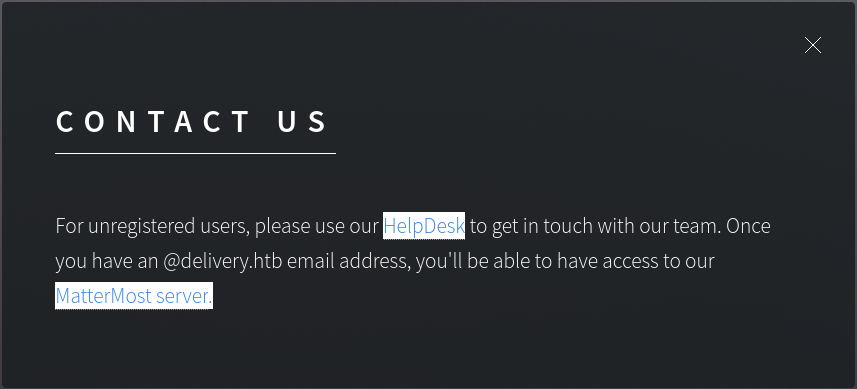 http://helpdesk.delivery.htb/and MatterMost server address-http://delivery.htb:8065/![]()