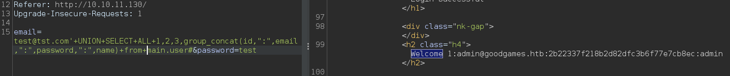 1:admin@goodgames.htb:2b22337f218b2d82dfc3b6f77e7cb8ec:admin:superadministrator