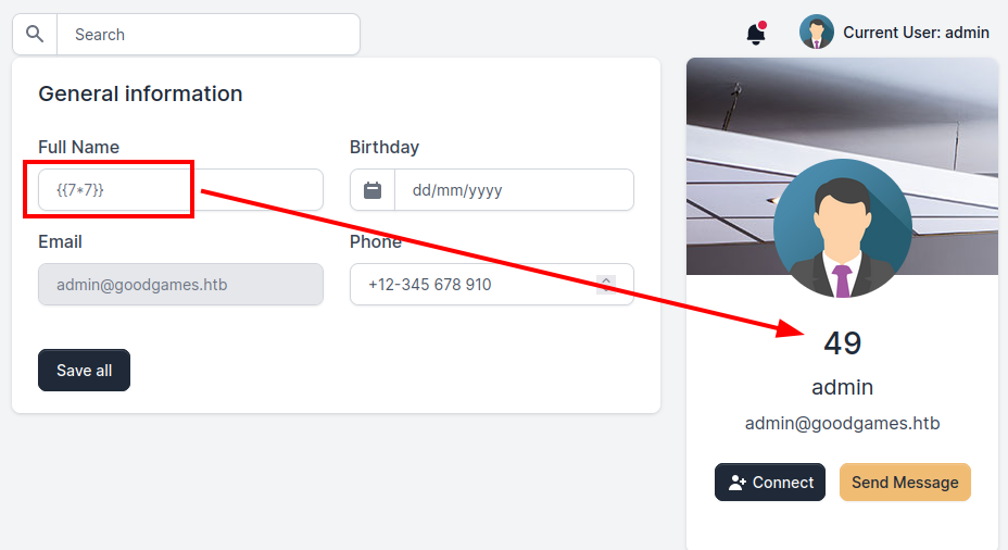 In the volt dashboard, found SSTI(Server-Side Template Injection) in /settings reflected in the user’s profile name