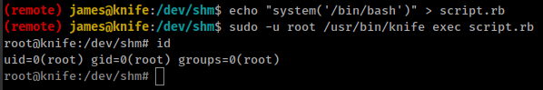 User “james” have sudo rights to run /usr/bin/knife as root with NOPASSWD