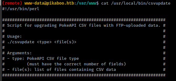 (remote) www-data@pikaboo.htb:/var/www$ file /usr/local/bin/csvupdate