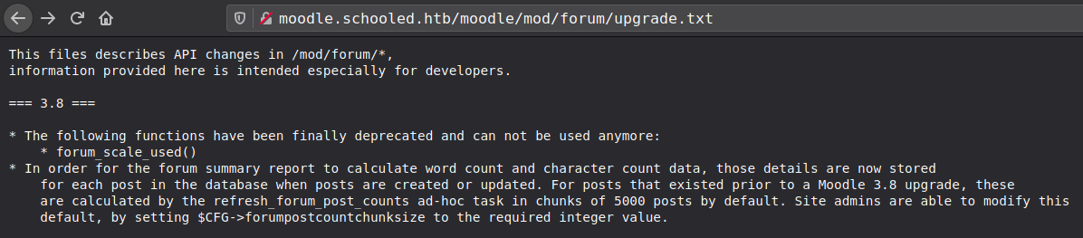 http://moodle.schooled.htb/moodle/mod/forum/upgrade.txt