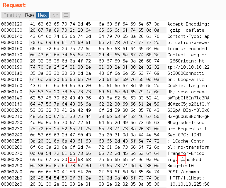 However, if we have a \x0b (vertical tab) before the “chunked” string (note: \x0c aka form feed also works).