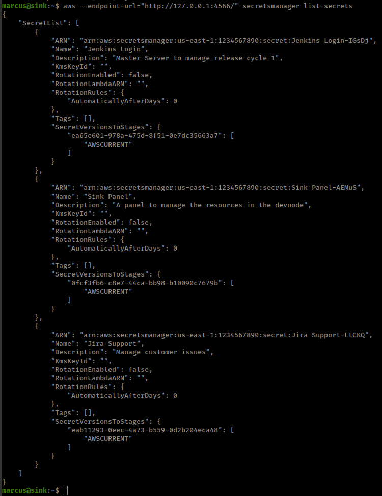 aws --endpoint-url="http://127.0.0.1:4566/" secretsmanager list-secrets