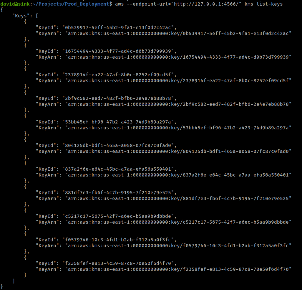 aws --endpoint-url="http://127.0.0.1:4566/" kms list-keys