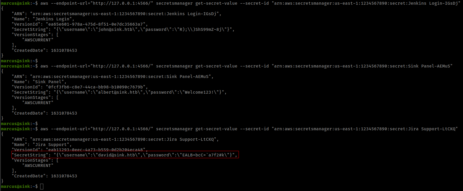 and get david password from "arn:aws:secretsmanager:us-east-1:1234567890:secret:Jira Support-LtCKQ"
