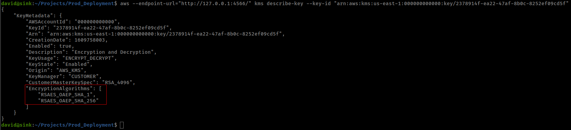aws --endpoint-url="http://127.0.0.1:4566/" kms describe-key --key-id "<KeyArn>"