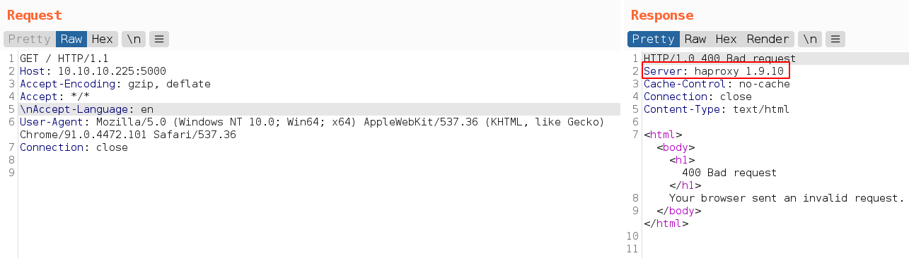 Server is running version 1.9.10 and http smuggling Vulnerability found in HAProxy before 2.0.6.