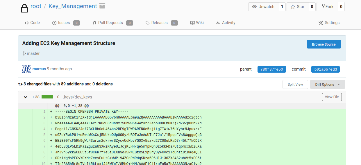 Got ssh key for user “marcus” from http://10.10.10.225:3000/root/Key_Management/commit/b01a6b7ed372d154ed0bc43a342a5e1203d07b1e commit in root’s “Key_Management” repository.