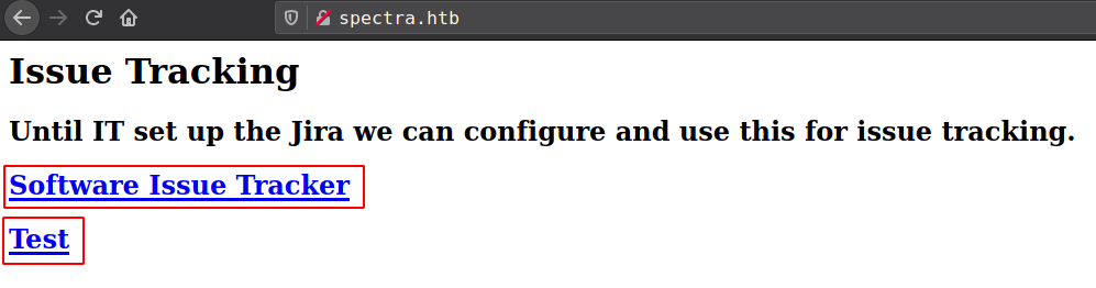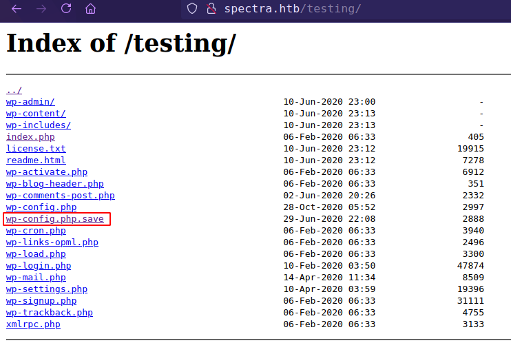 http://spectra.htb/main/ http://spectra.htb/testing/