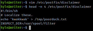 (remote) www-data@writer:/$ cat /etc/postfix/master.cf | tail -n 2